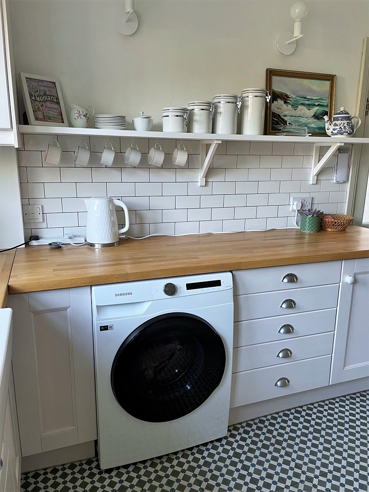 Moving on to the kitchen/dining nook. For the first time since moving to the UK, we have a dishwasher and I never want to live without one again! We also splurged on a washer/dryer and it’s a lifesaver on rainy days.